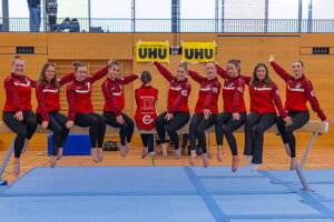 Am 01.02.2026 startete unsere erste Mannschaft mit Sarah Schuttermaier, Greta Lichtenthaler, Alma Johns, Bea Nawrotzki, Leonie Rick, Anne Dietrich, Lena Schmidt sowie Margarethe Hedrich als Hochturnerin in die neue Ligasaison in Bühl. Aufgrund mehrerer verletzungsbedingter Ausfälle (Lotta Lederer, Magdalena van Gehmen, Nicola Albrecht und Annika van der Borght) ging das Team leider etwas geschwächt an den Start.